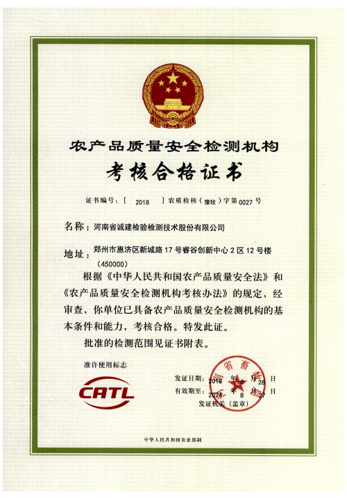 河南省诚建检验检测技术股份有限公司实验室认可证书